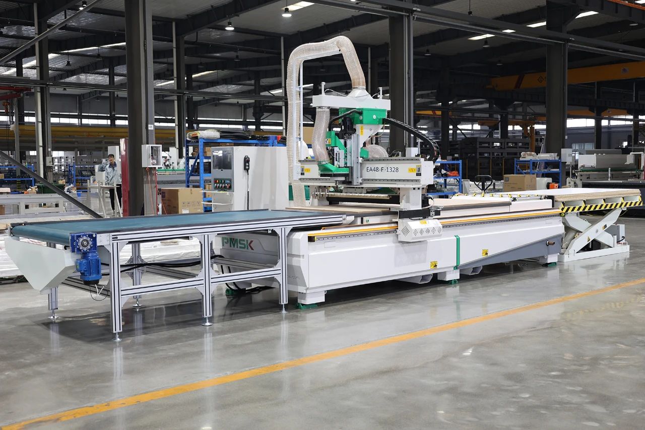 直排加工中心主要用于板式家具柜體以及門板的加工生產(chǎn);可快速鉆孔、開槽與切割下料加工,可加工常見的板式家具二合一、三合一連接件安裝孔位,具備加工部分種類隱形連接件的功能;本機(jī)配備大功率換刀主軸及直排式刀庫,適合多元化復(fù)雜性產(chǎn)品加工或多樣加工,用途廣泛:可一次性下料、鉆孔、切割、倒邊、雕刻等;操作簡(jiǎn)單,特別適合定制化需求生產(chǎn)加工。